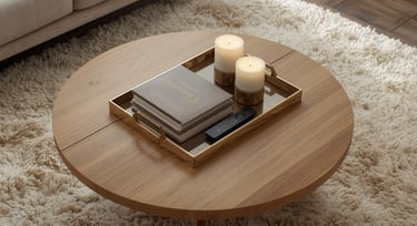 Your coffee table is more than a place to rest your feet; it’s a design opportunity. To keep it organized, use the Rule of Three: combine something vertical (a vase), something flat (a book), and something organic (a plant).